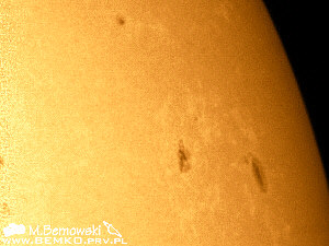 Dwubiegunowa grupa plam z półcieniami w otoczeniu licznych pochodni, można również zauważyć granulację